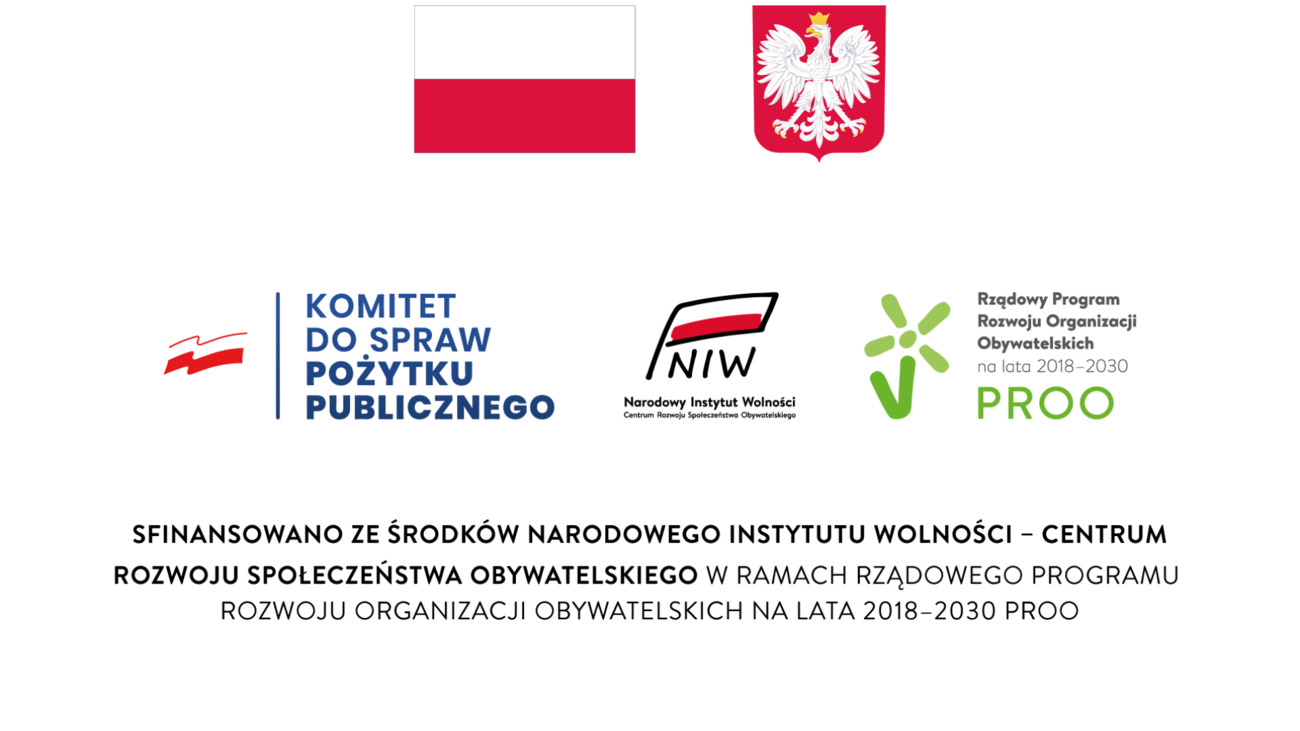 Projekt finansowany jest ze środków Narodowego Instytutu Wolności – Centrum Rozwoju Społeczeństwa Obywatelskiego w ramach Rządowego Programu Rozwoju Organizacji Obywatelskich PROO na lata 2018–2030.