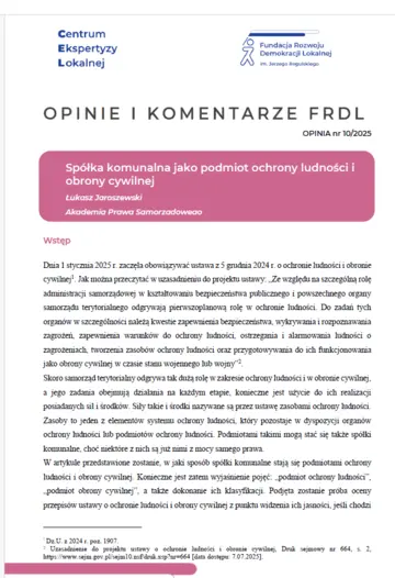 Spółka komunalna jako podmiot ochrony ludności i obrony cywilnej