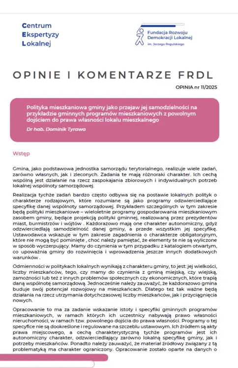 Polityka mieszkaniowa gminy jako przejaw jej samodzielności na przykładzie gminnych programów mieszkaniowych z powolnym dojściem do prawa własności lokalu mieszkalnego