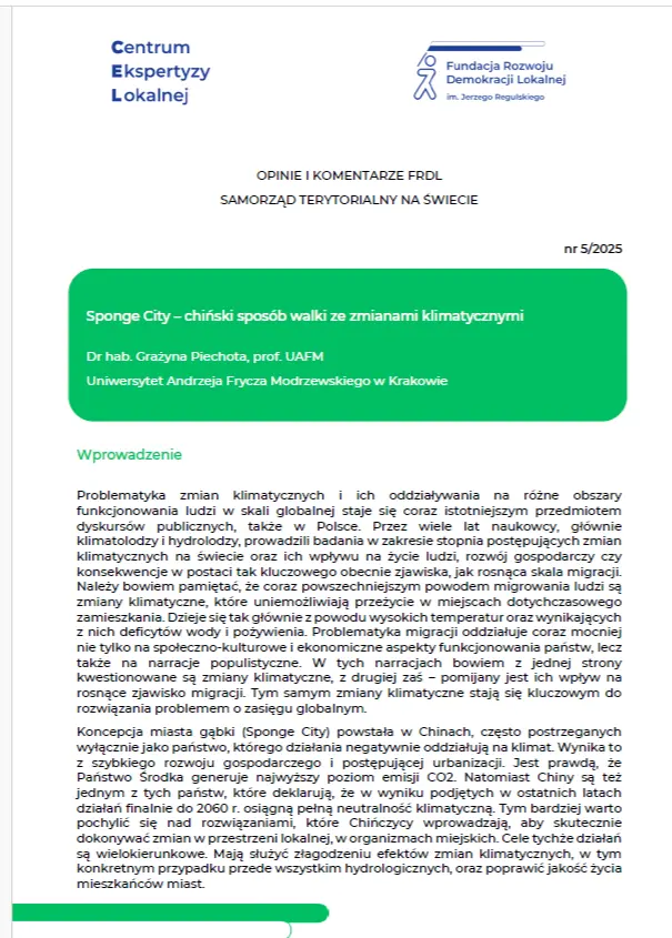 Miasta gąbki powstały z potrzeby ograniczania negatywnych zjawisk pogodowych i jako odpowiedź na zmiany klimatyczne oraz postępującą urbanizację. Koncepcja Sponge City narodziła się w Chinach i tam stała się najbardziej rozpowszechnionym sposobem radzenia sobie ze skutkami rozwoju gospodarczego i infrastrukturalnego, które doprowadziły do znaczącej degradacji środowiska naturalnego. Coraz gwałtowniej przebiegające zmiany klimatyczne oddziałują negatywnie na codzienne życie mieszkańców miast. Z jednej strony wysokie temperatury, emisja CO2, deficyty hydrologiczne, z drugiej – nadmierna zabudowa wpływają na to, że miasta stają się coraz mniej przyjaznymi przestrzeniami do zamieszkania. Przekształcanie organizmów miejskich w Sponge Cities wydaje się zaspokajać wiele zróżnicowanych potrzeb w poszczególnych grupach społecznych. W artykule omówiono trzy studia przypadków, które pozwalają zrozumieć, w jaki sposób jedno z najszybciej rozwijających się państw świata radzi sobie z wdrażaniem rozwiązań z zakresu zrównoważonego rozwoju. Jednocześnie wiele z przyjętych rozwiązań z powodzeniem może zostać zaimplementowanych także w innych krajach.